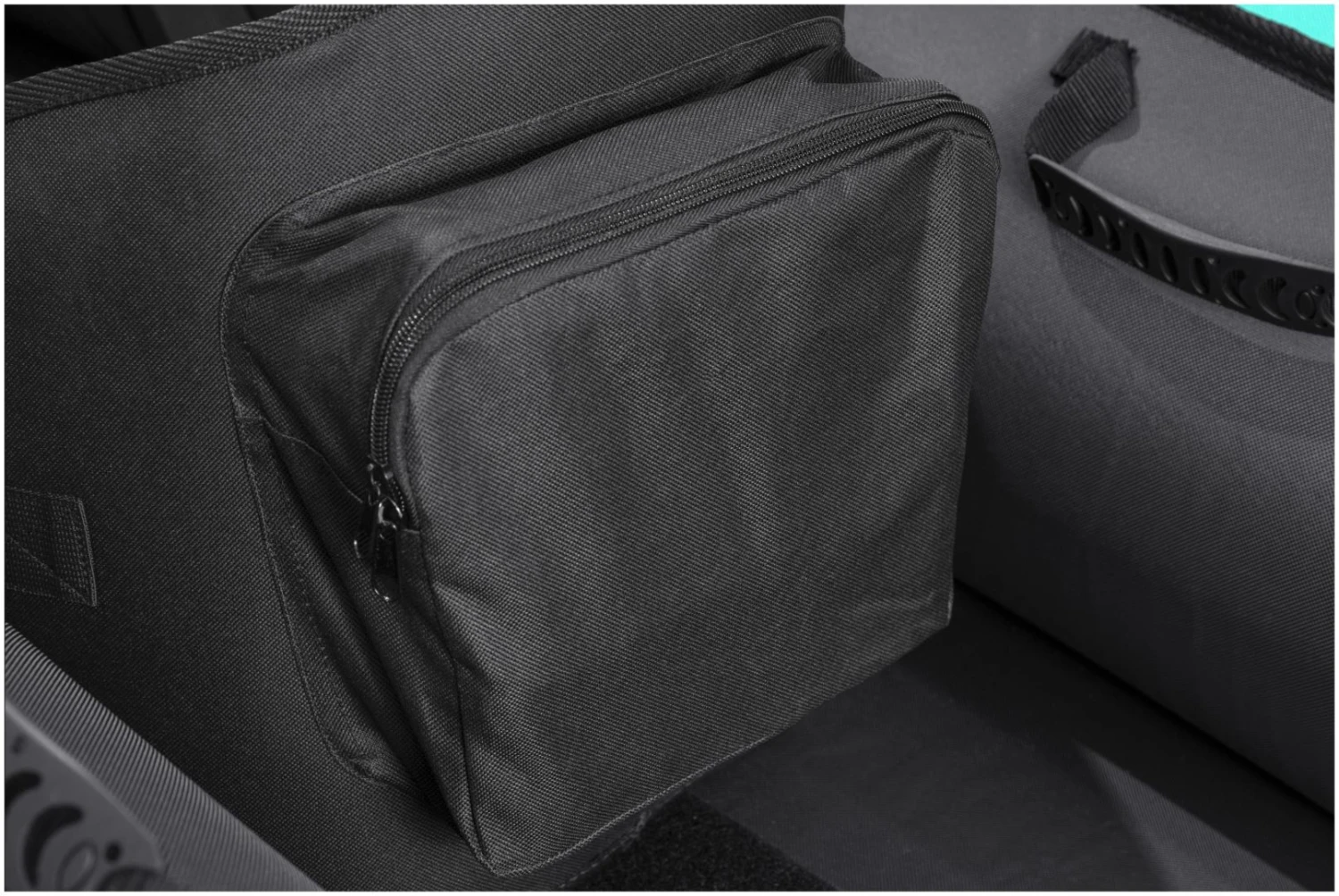 De Hydro-Force™ Ventura kajak is ergonomisch ontworpen voor uw volgende avontuur en is de perfecte boot voor uw avonturen buiten. Premium gecoat nylon: De premium nylon coating van de Ventura Kajak is gemaakt voor de grootste avonturiers en is bestand tegen de zwaarste omstandigheden. De stof is oliedicht, waterdicht een bestand tegen intense UV-stralen. De premium nylon coating is lekbestendig en gemaakt om de ruwe en vaak rotsachtige wateren van een rivier te weerstaan. Deze duurzame kajak brengt u over bochtige rivieren, meren en door kalm open water of over kabbelende golven. Belangrijkste functies: Deze eenpersoons kajak is ontworpen met een verstelbare rugsteun voor comfort en ondersteuning en biedt plaats aan uw benodigdheden, zoals proteïnen en water, in gemakkelijk toegankelijke opslagcompartimenten. Naast de opslagruimte die in de boot is ingebouwd, is er ook een afneembare opbergzak die u kunt bereiken terwijl u over het water peddelt. De roeispanen met dubbel blad zijn van aluminium, lichtgewicht en worden vastgehouden met stevige roeispaanklemmen. Wanneer de kajak volledig is opgepompt met de handpomp, is hij 2,80 m (9 ft.) lang en kan hij tot 130 kg (286 lbs.) dragen. Er zitten stevige canvas handgrepen op de zijkanten zodat de kajak supereenvoudig te verplaatsen is. De Ventura Kajak heeft afneembare vinnen die helpen met richtingsstabiliteit en de snelheid vergroten. Verwijder voor opbergen de vinnen eenvoudig van de kajak om deze supercompact en ruimtebesparend op te kunnen vouwen.
