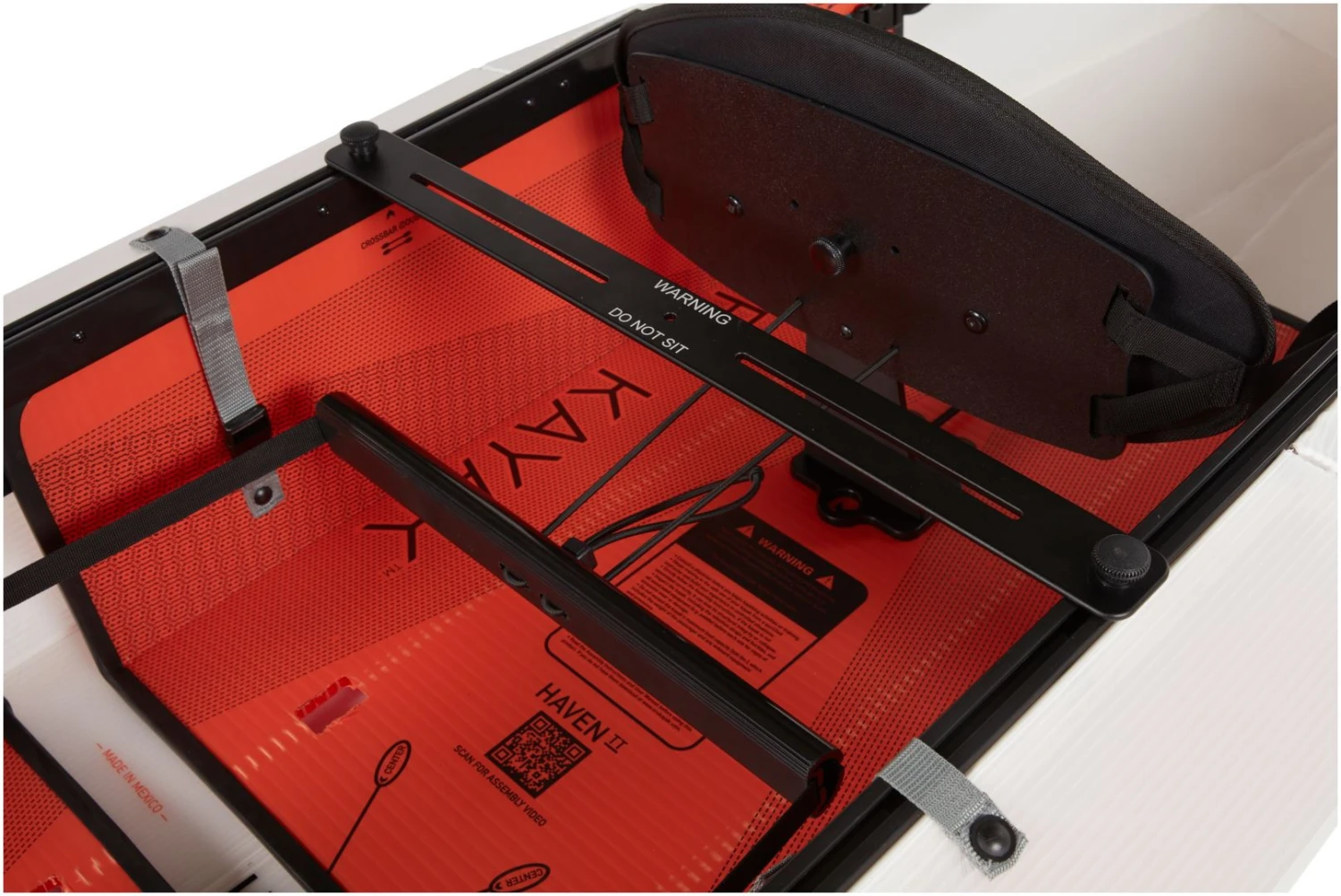 The Haven heeft de ziel van een kano het is stabiel, ruim, en kan een heleboel spullen te houden. Het heeft een capaciteit van 500 pond, met veel ruimte voor twee volwassenen of verschillende combinaties van uitrusting, kinderen en honden.
