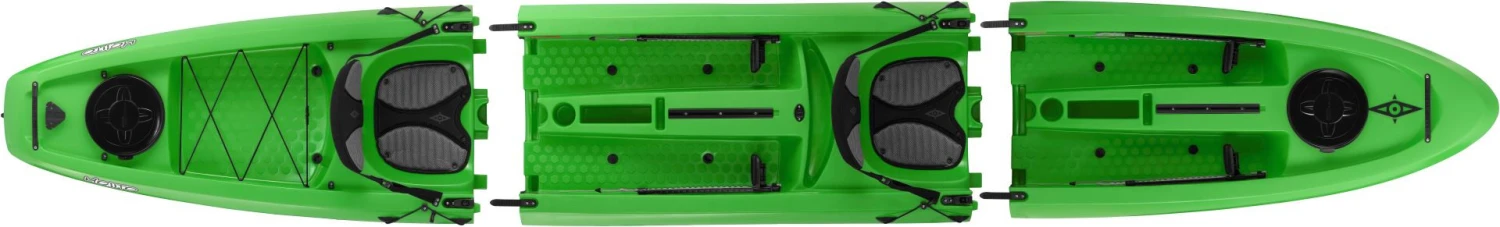Het is niet nodig om twee kajaks te kopen. Klik het middengedeelte vast en uw eenzitter wordt omgevormd tot een hoogwaardige tandem. Nooit eerder was een kajak zo leuk en gemakkelijk te bezitten.