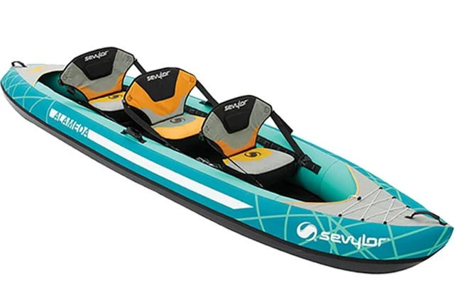 De Sevylor Alameda is een sportieve kayak met een robuust uiterlijk. Het is een zeer ruime kayak die plaats biedt voor 3 personen (2 volwassenen en 1 kind). De verhoogde stoelen zijn verstelbaar en hebben een hoge rugleuning voor extra comfort. De afneembare vinnen zorgen voor een perfecte wendbaarheid van deze kayak. Een ideale gezinskayak die prima geschikt is voor zowel beginners als de meer ervaren kayakkers.